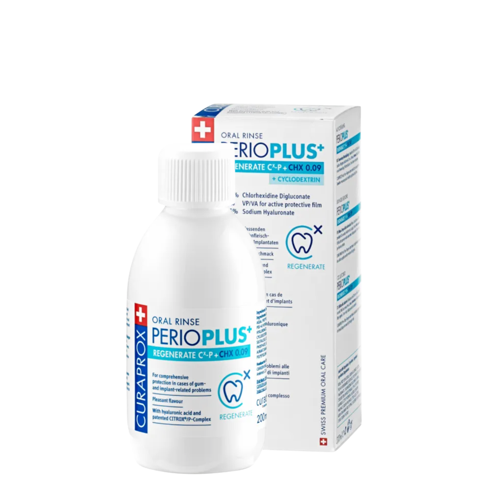 Stipriausios CHX koncentracijos Perio Plus+ Regenerate – antibakterinis poveikis, kuris efektyviai mažina bakterinių apnašų formavimąsi ir dauginimąsi.