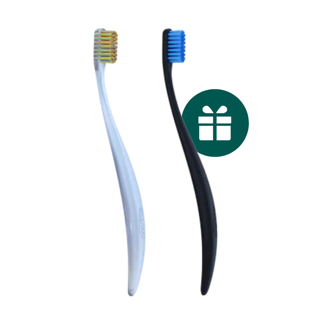 Šį burnos priežiūros komplektą sudaro "Curaprox Be You" balinanti dantų pasta su gliukoksidaze - natūraliu fermentu balinančiu dantis (2 vnt. x 60 ml) ir "Promis" minkštas dantų šepetėlis su 6750 užapvalintais šereliais (1 vnt.)